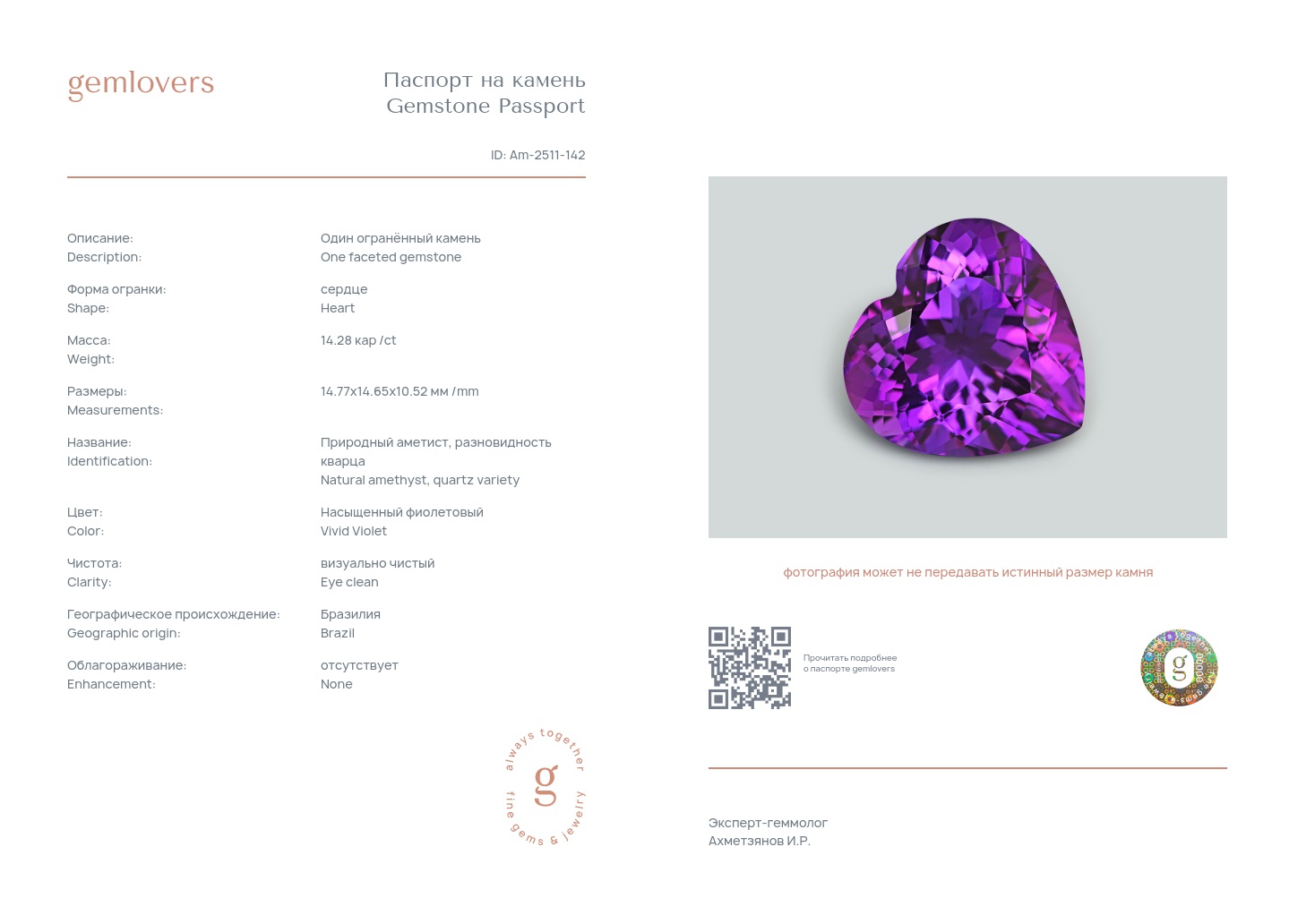 Все наши камни сопровождаются паспортами GEMLOVERS, подтверждающими соответствие камней заявленным характеристикам.