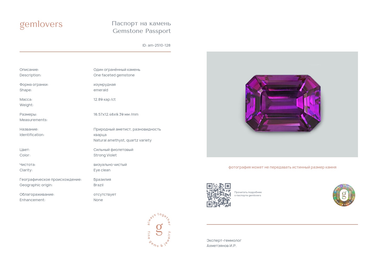 Все наши камни сопровождаются паспортами GEMLOVERS, подтверждающими соответствие камней заявленным характеристикам.