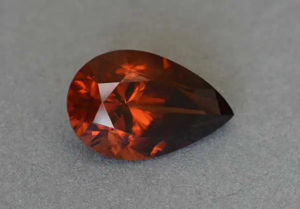 Природный камень циркон гиацинт великолепно смотрится в огранке. Зеркальная полировка, симметрия и элегантная форма вытянутой груши - аргументы высокого качества камня. Происхождение - Танзания. Цвет циркона - глубокий оранжевый с красным оттенком. Гиацинт не был подвергнут облагораживанию. Благодаря насыщенному цвету и яркому блеску он будет драматично выглядеть в подвеске или кольце в окружении коньячных и даже черных бриллиантов.