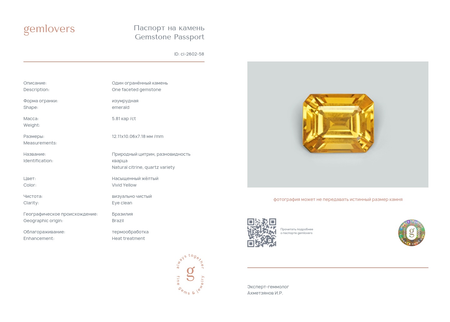 Все наши камни сопровождаются паспортами GEMLOVERS, подтверждающими соответствие камней заявленным характеристикам.