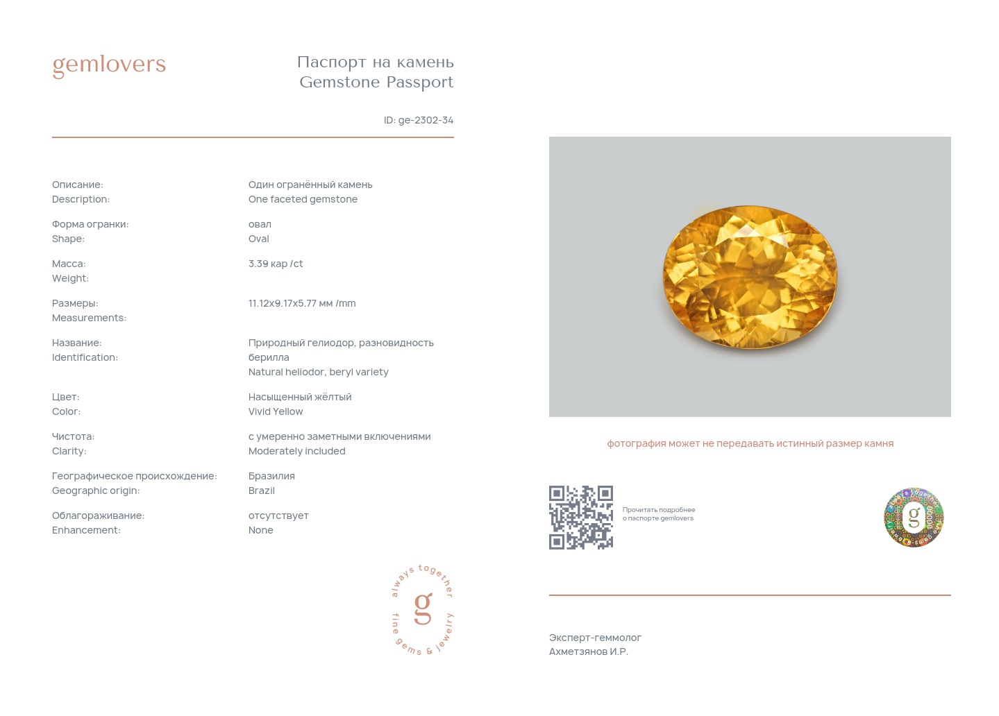 Все наши камни сопровождаются паспортами GEMLOVERS, подтверждающими соответствие камней заявленным характеристикам.