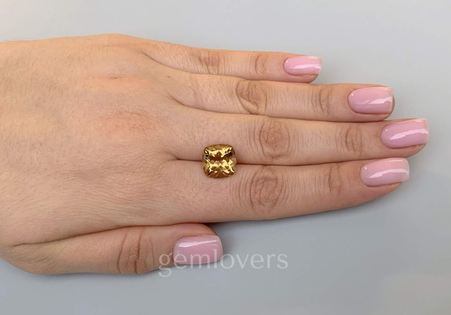Замечательный бразильский берилл гелиодор насыщенного желтого цвета. Ему придана форма кушона, камень обладает блеском и красиво играет, в изделии в окружении драгоценного металла и бриллиантов он будет смотреться изумительно! Масса камня - 5.80 карата.