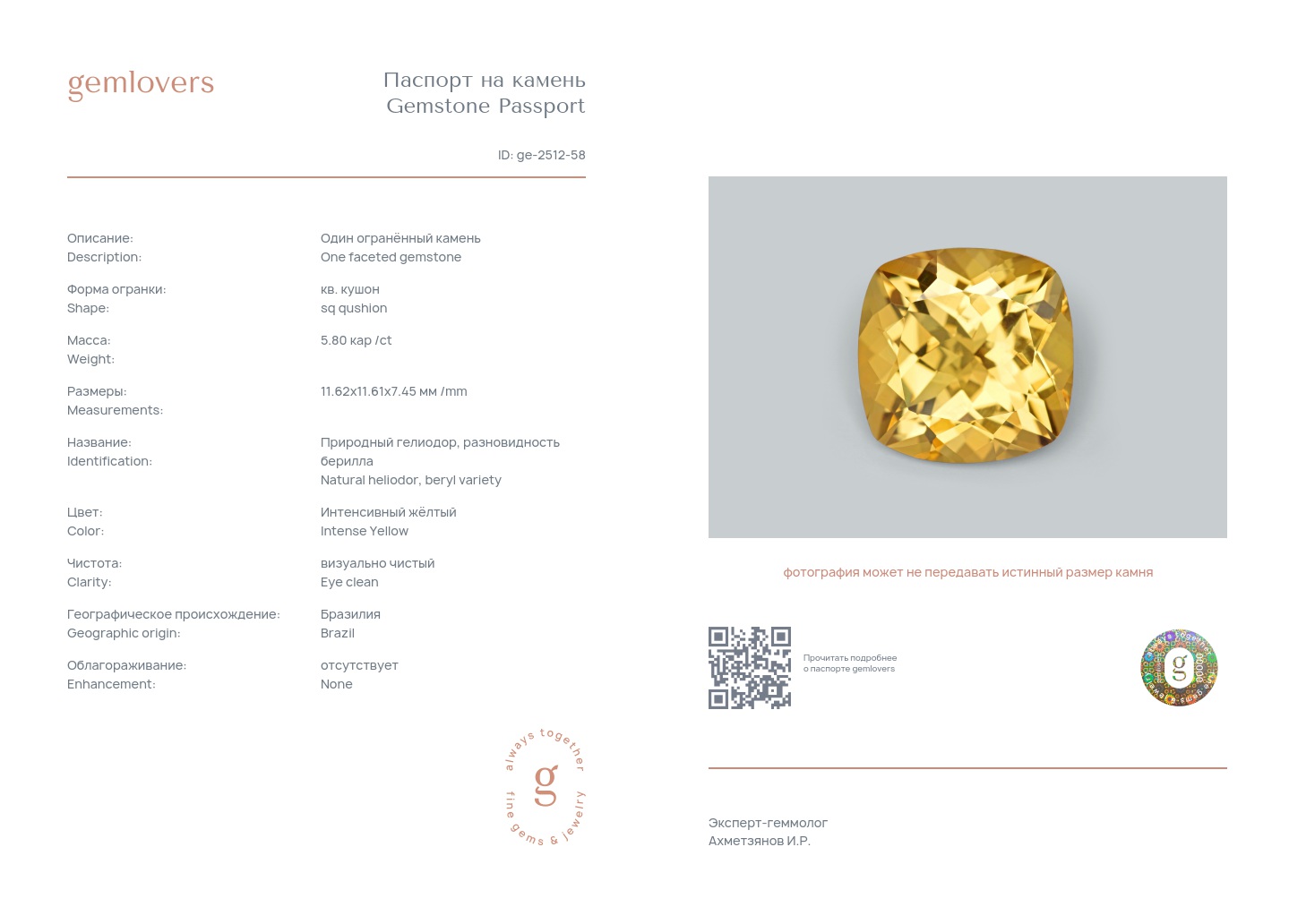 Все наши камни сопровождаются паспортами GEMLOVERS, подтверждающими соответствие камней заявленным характеристикам.
