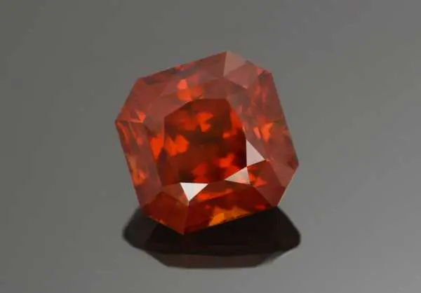 Гессонит - разновидность граната, которую не часто можно увидеть в ювелирных изделиях. Гессониты ювелирного качества подобной массы достаточно редки. Камень обладает тёмным коричневато-оранжевым цветом, и подойдёт тем, кто любит спокойные цвета. Для этого крупного гессонита характерно наличие едва заметных включений, которые образуют в камне так называемый «эффект горячих волн».