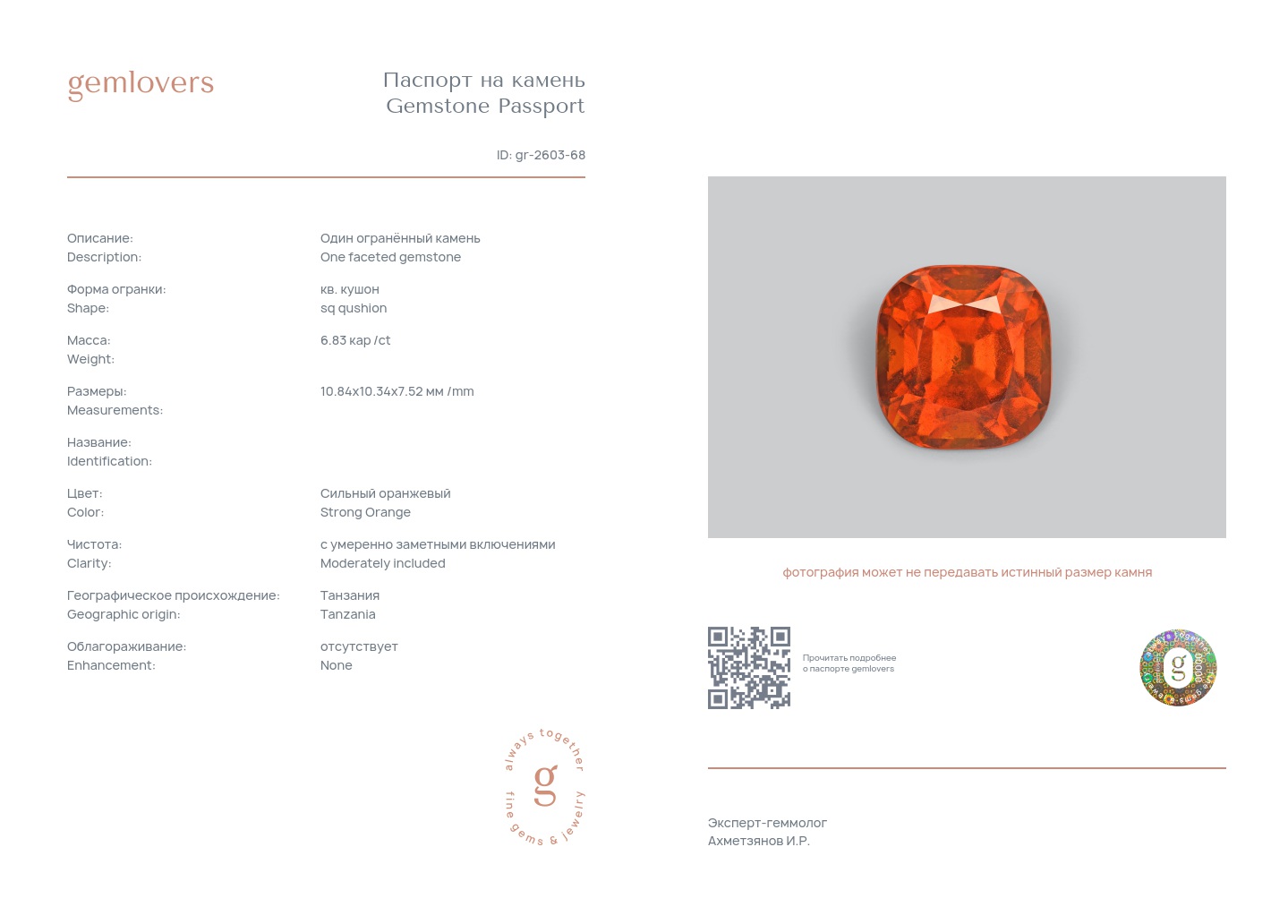 Все наши камни сопровождаются паспортами GEMLOVERS, подтверждающими соответствие камней заявленным характеристикам.