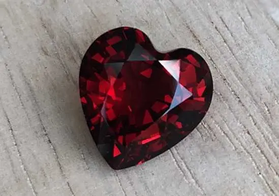 Мы представляем Вам благородный представитель семейства гранатов - темно-красный гранат в романтичной форме сердце. Этот красный гранат имеет отличную огранку, полностью раскрывающую всю глубину цвета. Кольцо с красным гранатом будет притягивать восторженные взгляды окружающих. Камень гранат в европейской традиции издавна считается символом любви и брака, поэтому гранат в редкой форме сердца послужит прекрасным подарком любимой.
