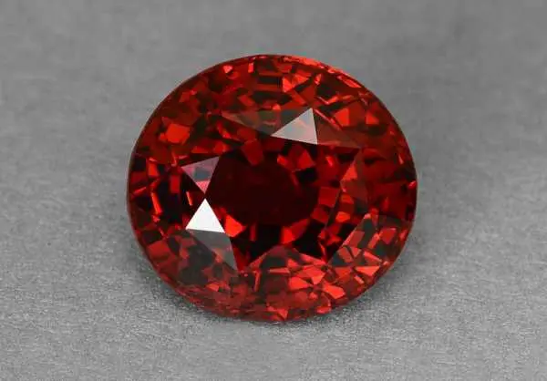 Яркий игручий гранат насыщенного красного цвета. Камень имеет цейлонское происхождение, относится к разновидности пироп. Масса превышает 7 карат, что при прочих высоких характеристиках считается редкостью.