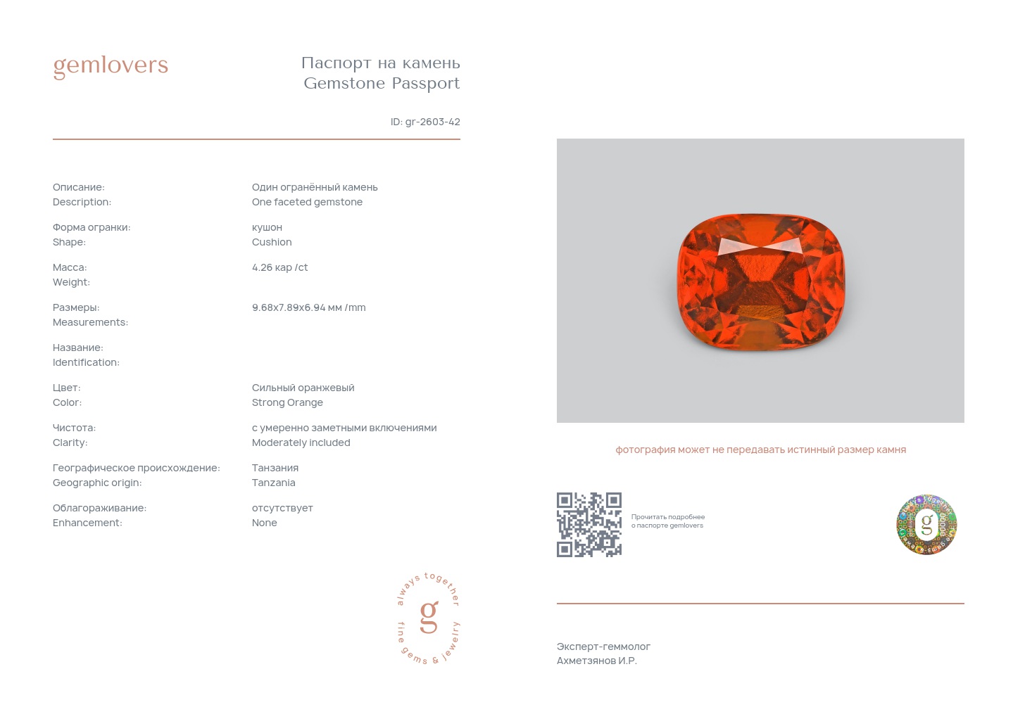 Все наши камни сопровождаются паспортами GEMLOVERS, подтверждающими соответствие камней заявленным характеристикам.
