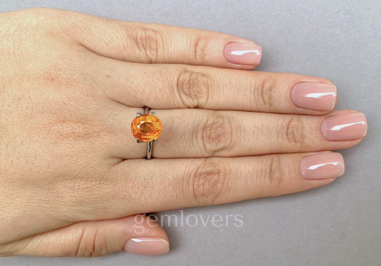 Если Вы задумали украшение с небольшим ярким редким камнем, позвольте посоветовать представленный экземпляр: природный гранат спессартин. Он обработан в форме овальной огранки, благодаря которой камень красиво играет. Страна добычи - Танзания. Цвет граната насыщенный оранжевый, теплый, если не сказать жаркий. Спессартин, будучи редкой разновидностью семейства гранатов, уважаем ценителями ювелирной моды и знатоками драгоценных камней.