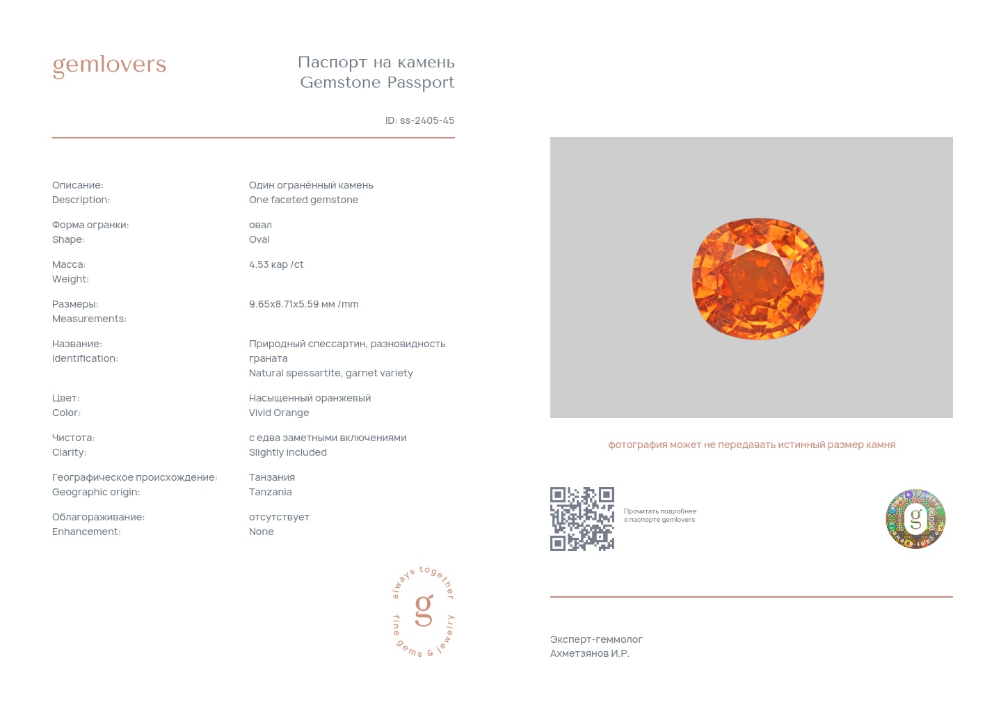Все наши камни сопровождаются паспортами GEMLOVERS, подтверждающими соответствие камней заявленным характеристикам.