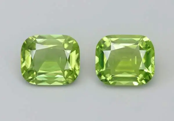 В природе хризолит встречается в виде небольших зёрен, реже в виде кристаллов. Камень никогда не подвергается облагораживанию, у него приятный цвет и высокая твердость. Цветовая гамма: зелёный с жёлтым оттенком, оливковый, золотистый, коричневато-зелёный. Насыщенные зелёные хризолиты, содержащие минимум жёлтого, наиболее ценные. Такой товар весом более 10 карат с хорошей чистотой уже можно отнести к разряду редких, они преимущественно встречаются в роскошных брендовых украшениях. Стоимость карата подобного перидота измеряется сотнями долларов.