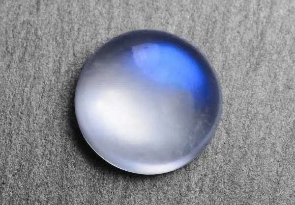 Этот голубой лунный камень - просто находка! Высокая чистота и прозрачность вкупе с яркой иризацией невероятно редко встречается у лунных камней массой более 2 карат. Этот же экземпляр весит 5.80 карат. Кстати, в нем также наблюдается эффект кошачьего глаза при точечном освещении. К сожалению, на фото практически невозможно передать этот эффект, поэтому рекомендуем посмотреть адуляр вживую при дневном свете. Еще несколько лет назад адуляры подобных характеристик поступали с месторождений Шри-Ланки, однако этот источник практически исчерпан. На сегодняшний день Танзания зарекомендовала себя как место добычи прозрачных адуляров. Форма огранки кабошона - круг.