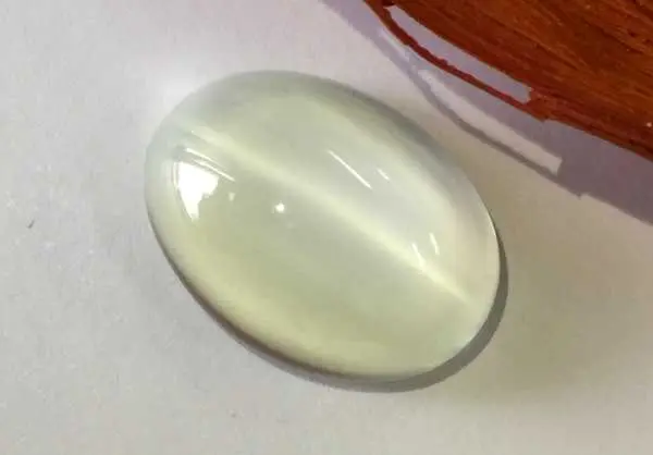 Полупрозрачный светло-серый лунный камень на свету красиво переливается, появлется интересный эффект кошачьего глаза. Этот лунный камень обработан в форму овального кабошона, прекрасный вариант для кольца или кулона. Место добычи - Индия. Серый цвет кабошона выглядит стильно и элегантно.