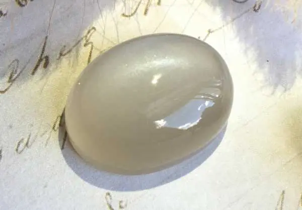Представленный лот интересен прежде всего крупным размером: масса лунного камня составляет 23 карата. Форма высокого овального кабошона гармонична и говорит об изысканном вкусе его обладателя. Лунный камень обладает хорошей полировкой и проявленной жемчужной иризацией, которая появляется при попадании света на поверхность. Светло-серый цвет прекрасно подходит для изготовления ювелирного изделия как в современном, так и в классическом стиле.