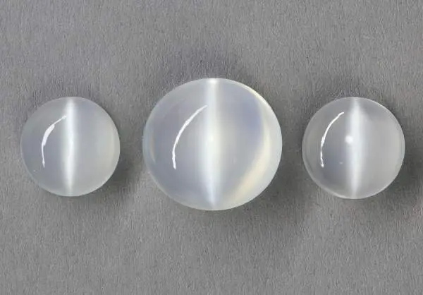 Тройка натуральных лунных камней с достаточно выраженным эффектом кошачьего глаза. Хорошо подойдет для создания неповторимого сета украшений: кольца / кулона и серег. Экземпляры танзанийского происхождения. Кабошоны формы круг близко подобраны по размеру. Масса комплекта - 41.62 карата.