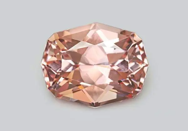 Интересный экземпляр натурального морганита - разновидности минерала берилла. Этот камень огранен в стильную лаконичную форму кушон. Отметим отличную полировку и огранку. Цвет - деликатный пастельный холодный розовый, напоминающий лепестки цветущей сакуры. Место добычи - Бразилия. Масса - 11.98 карат.