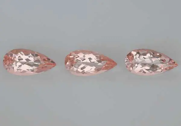 Исторически сложилось, что элегантная форма удлиненной груши часто встречается у натуральных бериллов морганитов, став своеобразным почерком этих розовых камней. В этом лоте морганиты в огранке груша собраны в красивый комплект. Цвет розовый с персиковым оттенком. Общий вес всего набора морганитов - 12.51 карат. Место добычи - Бразилия.