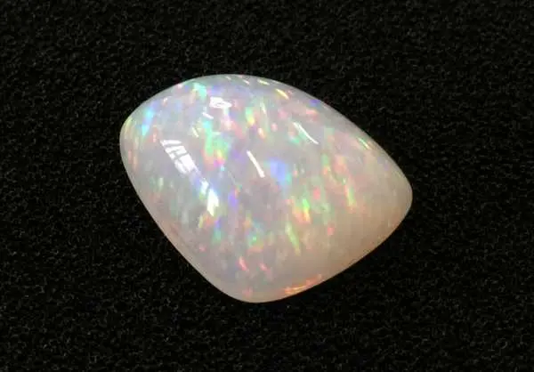 Это удивительный по красоте белый благородный опал из Эфиопии, месторождение Уэло (Welo). Когда наблюдаешь мятежную игру сказочных всполохов, словно прикасаешься к загадке прелести рассветов и закатов над гладью океана, северных сияний, радуги после дождя... Это редкий и эффектный рисунок опалесцении у благородных опалов. Несмотря на небольшую массу, около 8 карат, камень достаточно крупный. Кабошон обработан в форме кабошона "фри-форм".