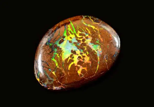 Красочный экземпляр натурального камня болдер опала в форме свободного кабошона (free form boulder opal). Рисунок опаловых прожилок в породе напоминает старинную карту мореплавателей, на которой нанесены очертания рек и океанов. Игра камня невероятная! В кабошоне присутствуют синий, голубой, красный, желтый, фиолетовый цвета, под разными углами зрения он выглядит по-разному.