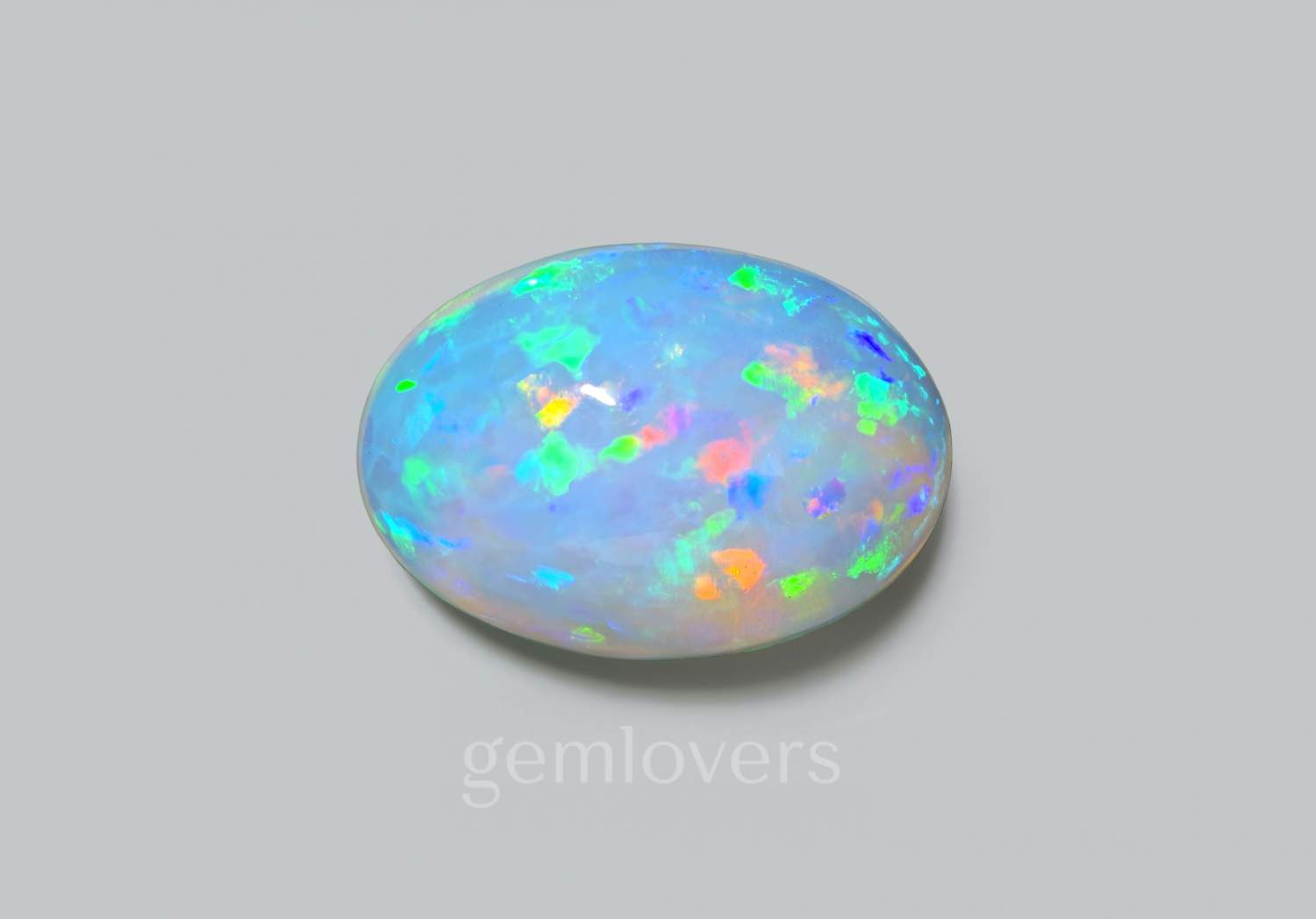 Кабошон - традиционная форма обработки натурального благородного опала. В большинстве случаев, форма кабошонов свободная (free form), гораздо реже встречаются гармоничные овалы, круги, груши. Этот кабошон опала 6.27 карат имеет овальную форму. Опалесценция представленного опала многоцветная, выраженная. Основные цвета опалесценции: зеленый, оранжевый, синий. Место добычи - Эфиопия.