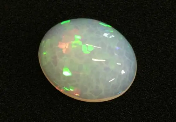 Представитель белых благородных опалов, экземпляр с месторождения Уэло (Welo), Эфиопия, не оставит равнодушным никого. Крупный, яркий, нарядный, он сразит красотой окружающих! Масса камня более 27 карат. Обратите внимание на овальную форму кабошона, редкую для крупных опалов. Выражена опалесценция, присутствуют зеленый, синий, красный, желтый цвета.