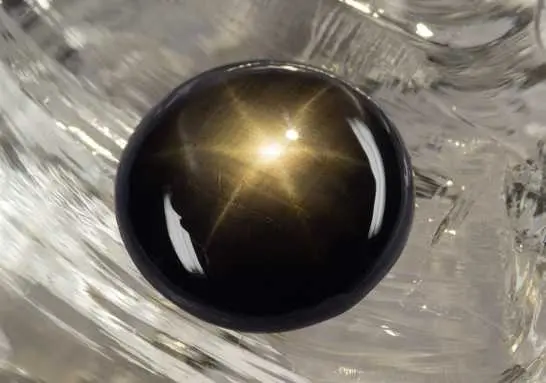 Чёрный звёздчатый сапфир с отличным проявлением эффекта астеризма в виде яркой шестилучевой звезды. Это достаточно редкий образец чёрного звёздчатого сапфира по качеству. Звезда имеет ровные тонкие лучи и равномерно перемещается по поверхности данного сапфира при покачивании.