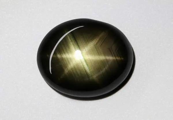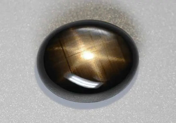 Если Вы хотите купить натуральный сапфир черного цвета со звёздчатым эффектом по весьма лояльной цене, наш каталог может предложить образцы с оптическим эффектом астеризма. Просто огранённые натуральные очень тёмные синие сапфиры также могут встречаться в продаже, но их тут не будем рассматривать. Цвет звёздчатых корундов разновидности блэк «black star sapphire» зачастую неравномерный тёмный серый с сильной зональностью. Эти сапфиры непрозрачны, изредка просвечивают при свете фонаря. Чтобы раскрыть эффект звёздчатости их не гранят, а обрабатывают кабошоном. При наличии точечного источника света (фонарик, лампа, Солнце) на поверхности образца будет наблюдаться скользящая светлая 6-лучевая звезда (реже 12-лучевая). Интересный оптический эффект обычно вызван наличием внутри корунда тонких игольчатых включений рутила, ориентированных вдоль граней кристалла. Термообработке самоцветы обычно не подвергают. Основные страны добычи сапфира черного цвета: