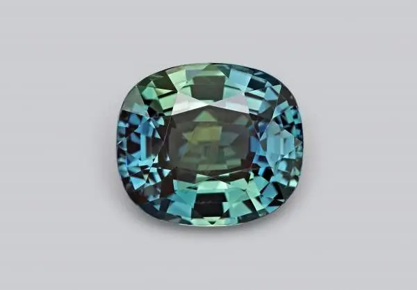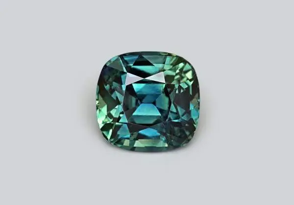 Перед Вами образец благородного камня сапфира насыщенного зеленого цвета. Форма огранки - классический кушон. Камень обладает хорошей игрой и полировкой. Масса 2.38 карата, Цена сапфиров зависит от множества факторов, в том числе растет по мере увеличения массы: чем крупнее камень, тем выше его стоимость. Однако стоимость зеленых сапфиров, как правило, ниже стоимость синих сапфиров. Происхождение Шри-Ланка.