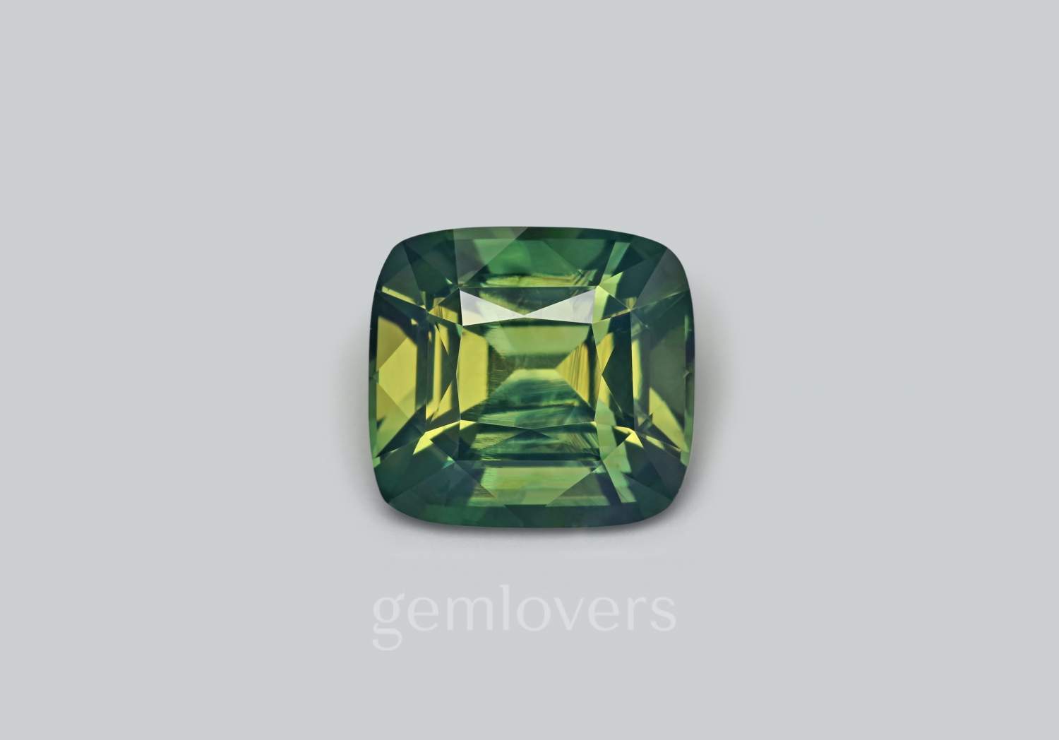 Фантазийный зеленый сапфир огранки кушон 2.06 карат