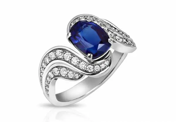 Представляем кольцо с натуральным синим сапфиром в авторском дизайне от Gemlovers. Белое золото, бриллианты, цейлонский сапфир… Шикарное ювелирное изделие! Сапфир природного происхождения массой 2.26 карат, он демонстрирует глубокий синий цвет и отличную чистоту, без видимых включений. Бриллианты имеют следующие характеристики: 40 шт.-Кр17-0,41ct-3/3. Вес изделия: 6,98 г. Размер 17.