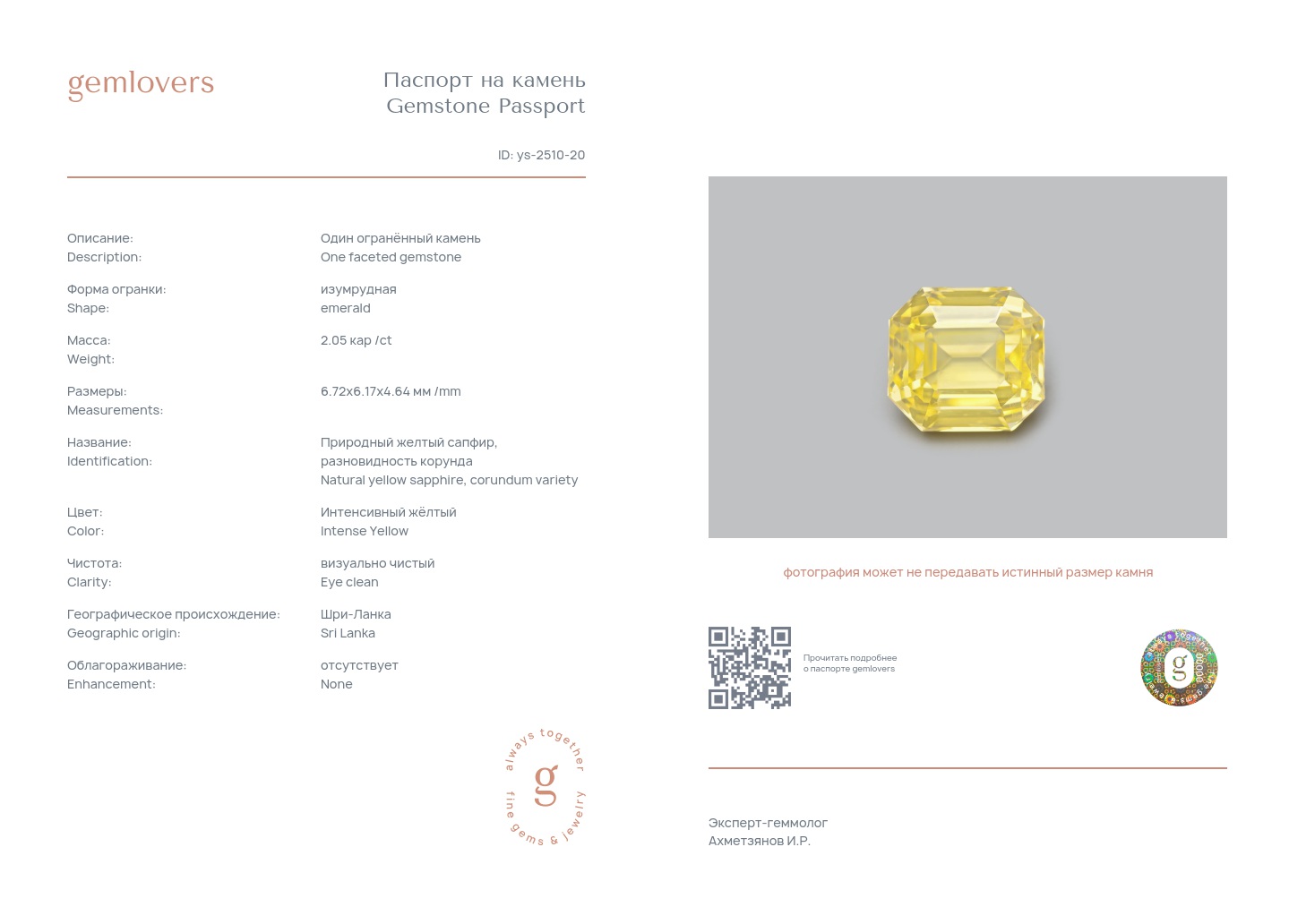 Все наши камни сопровождаются паспортами GEMLOVERS, подтверждающими соответствие камней заявленным характеристикам.