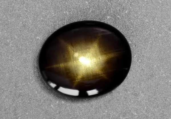 Представленный сапфир с эффектной звездой обработан в форме овального кабошона. Цвет - темный бронзовый, практически черный. Масса образца - 6.26 карат. Происхождение - Таиланд. Сапфиры с эффектом звездчатости всегда будут вызвывать интерес окружающих и не выйдут из моды. По твердости корунд составляет конкуренцию только алмазу, что обеспечивает сохранность камня даже при повседневной носке в украшении.