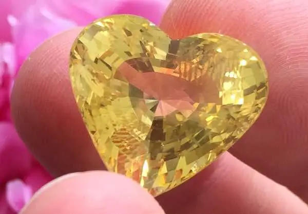 Желтый сапфир в огранке сердце 23.79 карат
