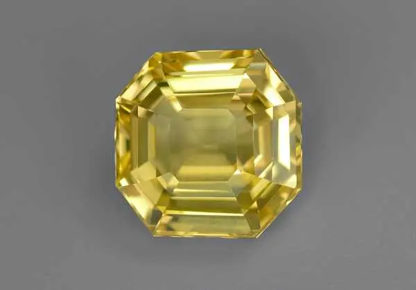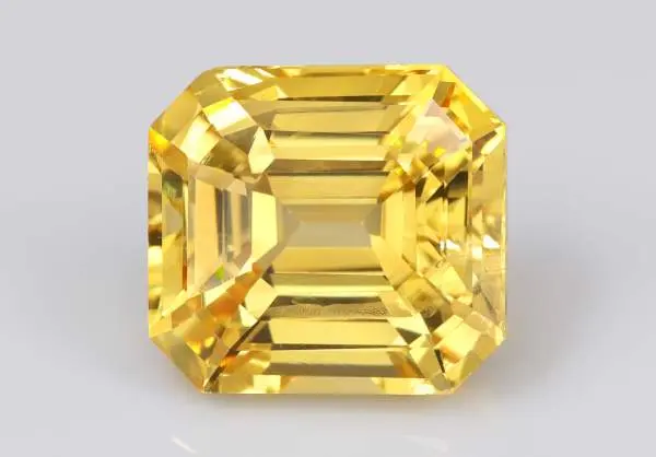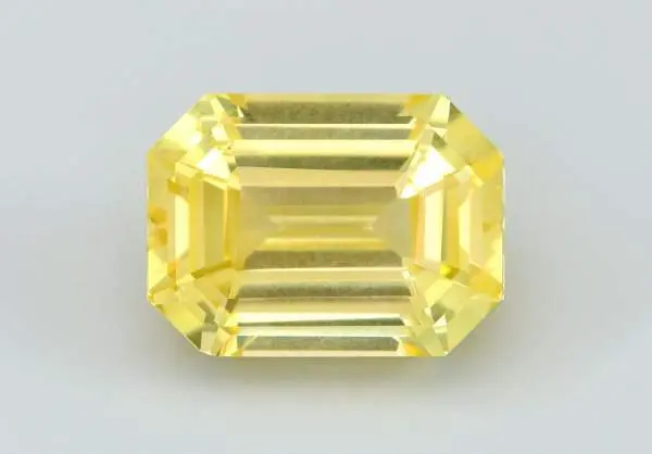 Сапфир желтого цвета в изумрудной огранке 5 карат