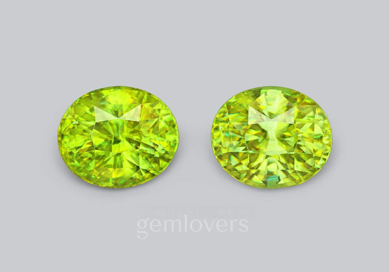 Желто-зеленыe сфены, как и их родина Мадагаскар, яркие и наполненные солнцем, сияющие и привлекающие внимание. Эти сфены демонстрируют шикарную дисперсию и отличный блеск. Фасетная огранка овал подходит для изготовления чудесных украшений! Представленные сфены вдохновляют на создание серег/пусет. Закажите украшение у наших ювелиров, порадуйте себя и близких!