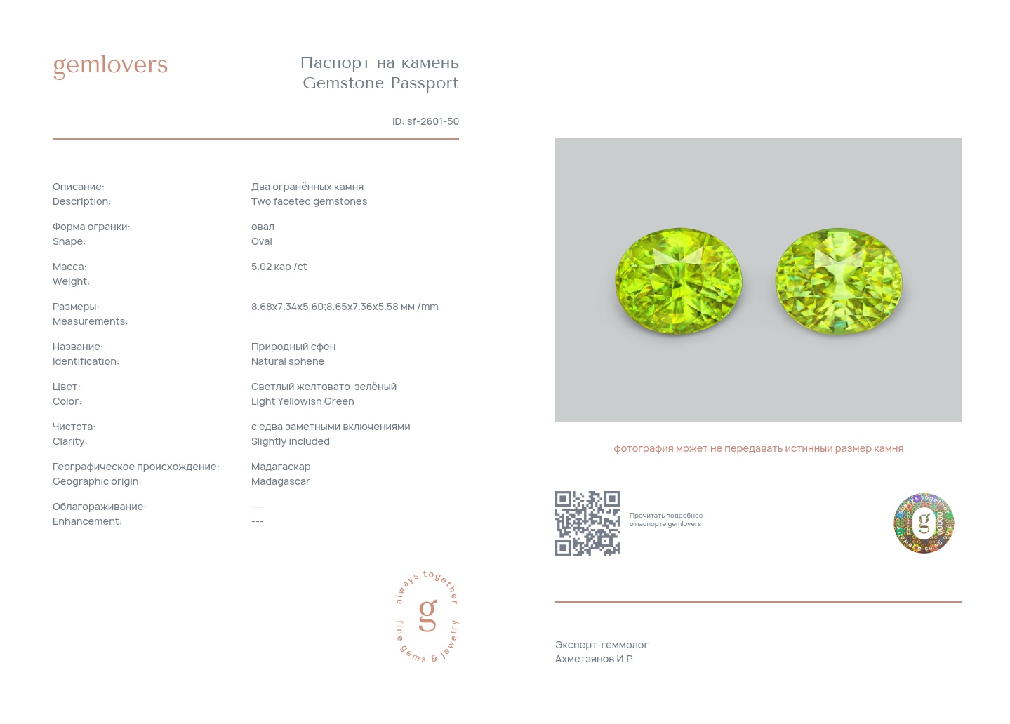 Все наши камни сопровождаются паспортами GEMLOVERS, подтверждающими соответствие камней заявленным характеристикам.