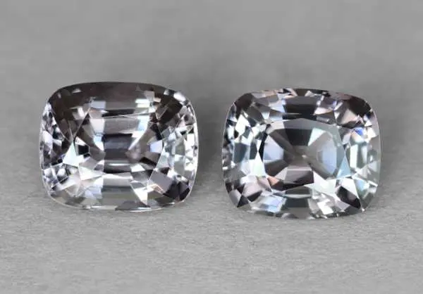 Отличная пара натуральной благородной шпинели спокойного серого оттенка. Камни имеют бирманское происхождение. Форма огранки (кушон) и окраска позволяют использовать эти шпинели как в серьгах, так и в запонках. Общая масса камней 4.21 карат. Необлагорожены.