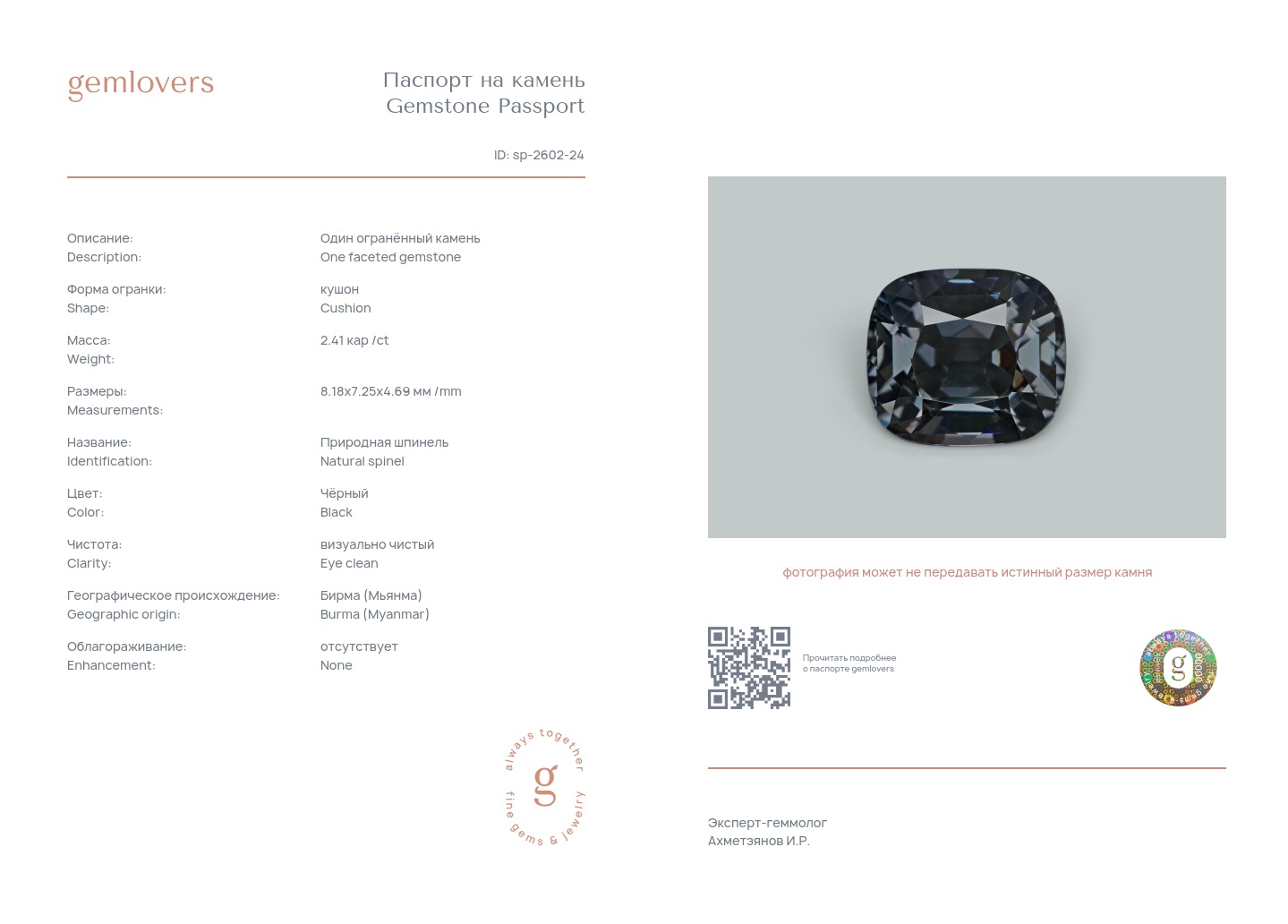 Все наши камни сопровождаются паспортами GEMLOVERS, подтверждающими соответствие камней заявленным характеристикам.