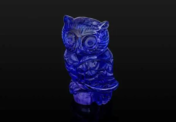 Прелестная совушка из натурального ювелирного камня танзанита! Сова – тренд сезона. Эти милые птички завоевали любовь миллионов и стали признанными героями современной моды! Фигурка совы из камня танзанит выполнена в технике резьбы по камню: если присмотреться, мастер – камнеобработчик  деликатно подчеркнул легкими штрихами крылья, перышки, прорисованы лапки. Обратите внимание на высокое качество резьбы и самобытный стиль автора.