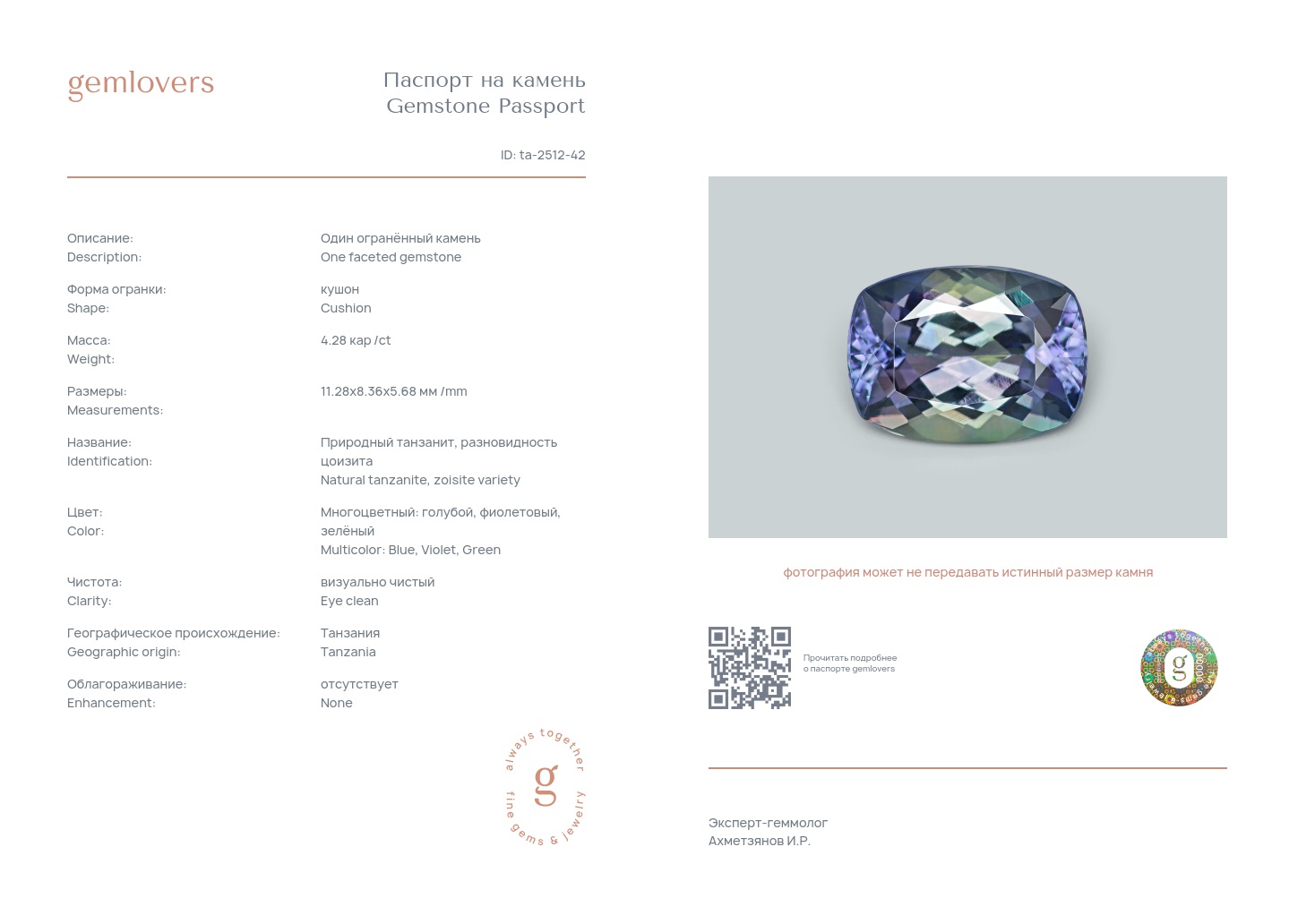 Все наши камни сопровождаются паспортами GEMLOVERS, подтверждающими соответствие камней заявленным характеристикам.