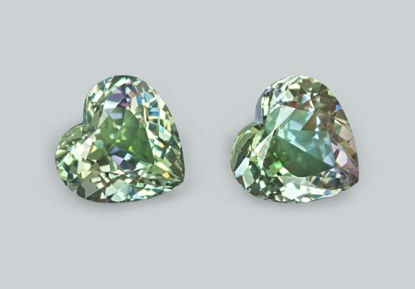 Парные полихромные танзаниты в огранке сердце 4.64 карат