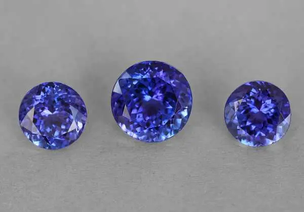 Синие цоизиты - танзаниты на сегодняшний день считаются ценным популярным ювелирным камнем. Его запасы истощаются ежегодно, так как открыто только одно месторождение в мире - в Танзании. Мы предлагаем вашему вниманию сет из трех танзанитов круглой огранки. Камни обладают высокими оценочными характеристиками. Отличная чистота и хорошая полировка обеспечивают блеск и яркую игру танзанитов. Общая масса - 12.71 карат.