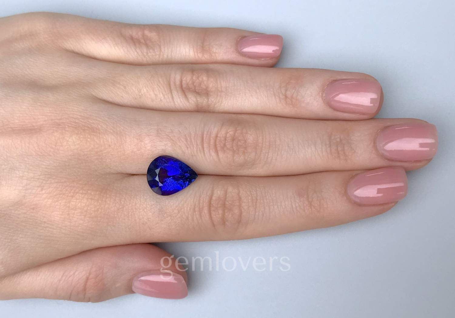 Представляем ювелирный танзанит природного происхождения, место добычи - Танзания. Форма огранки груша проста и изящна, она будет красиво смотреться в подвеске, броши или кольце. Цвет камня - классический для танзанитов насыщенный синий с оттенком фиолетового. Камень не содержит включений, трещин и каких-либо дефектов. Привлекательный экземпляр для подарка любимой.