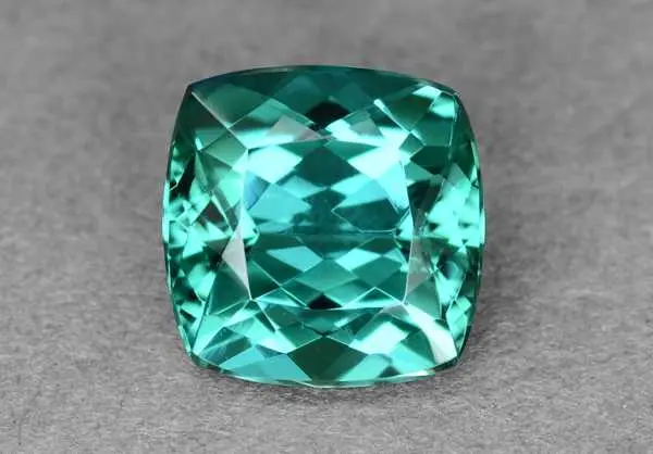 Представляет голубой турмалин индиголит в форме квадратного кушона (подушки). Этот камень имеет небольшой размер, меньше 2х карат по массе, но выглядит изумительно! Цвет яркий, красивый голубой с легкой зеленоватой ноткой. У турмалина "крупное лицо", что визуально делает его крупнее. Чистота - eye clean (отсутствуют включения, заметные невооруженному глазу). Ценно также то, что камень не подвергался облагораживанию, он абсолютно натуральный.