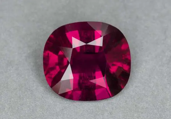Красный камень рубеллит обладает насыщенным, слегка пурпурным оттенком. Камень имеет крупное "лицо", благодаря чему он выглядит визуально больше. Незначительное количество включений и хорошая прозрачность - несомненный плюс образца, так как кристаллы рубеллитов обычно невысокой чистоты.