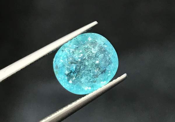 Представляем редкую природную пару драгоценных камней - турмалина Параиба. Эта пара имеет массу 0,55 карат. Насыщенный голубой цвет высоко ценится у турмалинов. В камне содержатся включения, характерныe для этой разновидности минерала. Происхождение - Бразилия.