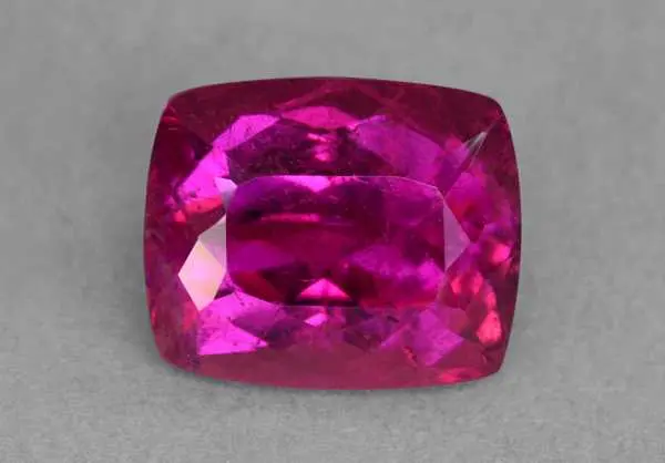 Турмалин рубеллит насыщенного пурпурно-красного цвета из Мозамбика в огранке кушон имеет массу 7.89 карат. В камне имеются незначительные включения, характерные для природных рубеллитов. Место добычи представленного камня - Мозамбик. Форма огранки - кушон. Экземпляры с подобным сочетанием характеристик оцениваются весьма высоко. Рубеллит не подвергался облагораживанию (негретый).