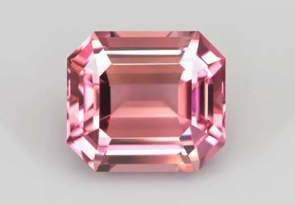 Деликатный розовый цвет характеризует разновидность турмалина рубеллит, чья цветовая палитра содержит оттенки красного от очень светлого розоватого до яркого алого. Представленный трехкаратный экземпляр розового турмалина (3.22 ct) имеет классическое бразильское происхождение. Изумрудная форма огранки достаточно редко встречается в рубеллитах, это делает данный экземпляр редким. Негретый турмалин (не подвергался никаким видам облагораживания).