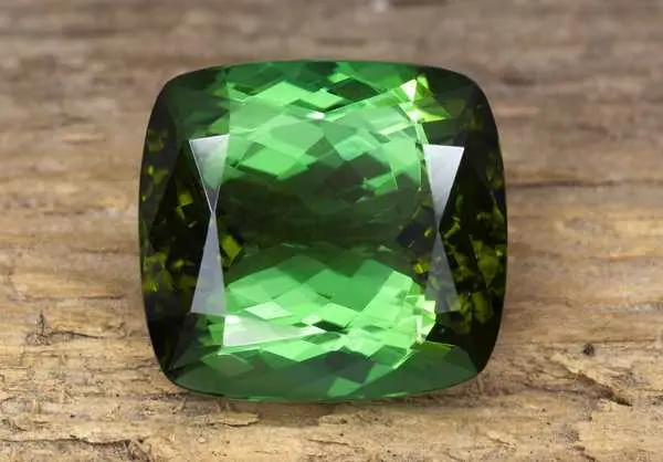 Бразильские верделиты считаются одними из лучших. Ювелиры любят самоцвет за отличный блеск, приятный спокойный зеленый цвет от светлого до темного, практически чёрного. Ювелирный камень верделит имеет огранку кушон и массу 13,44 карата.