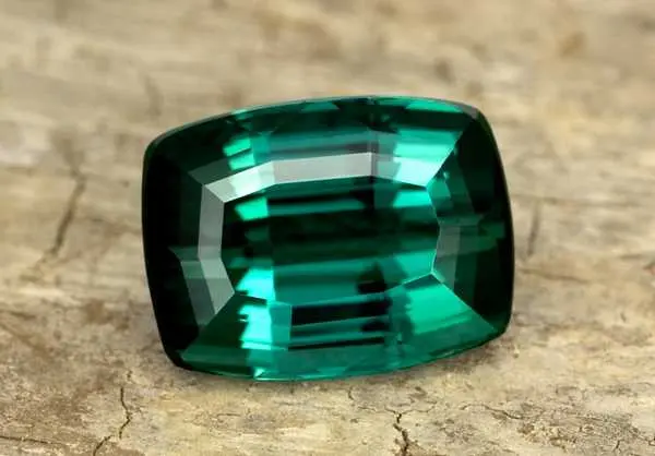 Цвет данного камня, весьма характерный для индиголитов, преимущественно зелёный с небольшими переливами синего. Его тёмный и насыщенный цвет отлично подойдёт как для мужского статусного кольца, так и в женское кольцо или кулон.